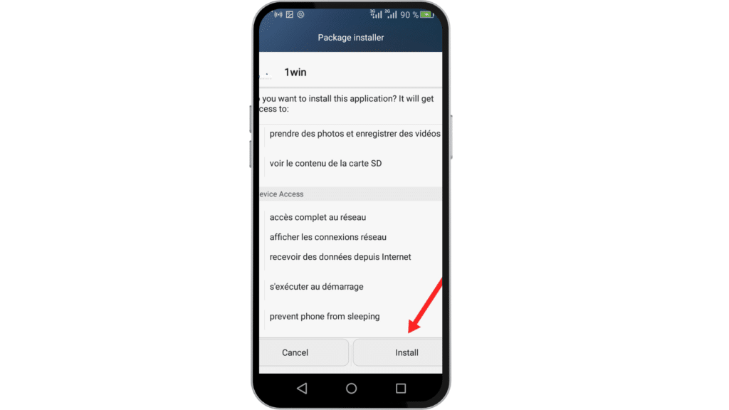 Juste après le téléchargement du fichier, ouvrez ce dernier et cliquez sur le bouton « Installer ». Vous verrez automatiquement l’icône de 1win dans le menu de vos applications.