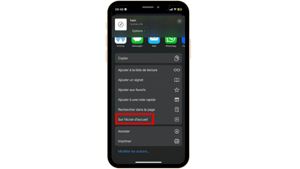 En mettant le site en raccourci, vous pouvez parier sur votre portable iPhone comme si c’était une vraie application.
