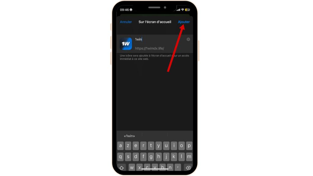 Nommez le raccourci créé “1win” et cliquez sur le bouton « Ajouter » se trouvant dans le coin supérieur droit.